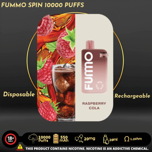 Introducing the Fummo Spin 10000 Puffs Disposable Vape in Dubai, UAE, a game-changer in the world of vaping. This innovative device packs a punch with a massive 550mAh rechargeable battery, ensuring that you won’t run out of power. With a remarkable 20ml e-liquid capacity, it offers a satisfying vaping experience. The 20mg/ml nicotine strength caters to your cravings, and the 1.2 ohm resistance provides a smooth draw. But what truly sets it apart is the astounding 10,000 puffs it delivers, making it a long-lasting choice. Fummo Spin 10000 is the ultimate fusion of power, flavor, and endurance, perfectly suited for the vibrant lifestyle.