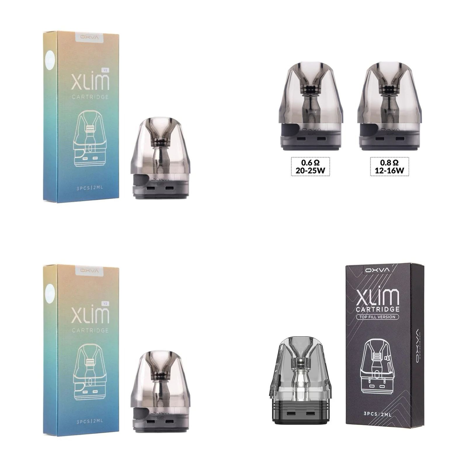 XLIM V2 CARTRIDGE is designed for OXVA XLIM Pod System Kit New color 900mah for X-treme flavor and a strong throat hit. There are two different flavor cartridges: 0.6Ω & 0.8Ω for options. 3pcs/pack.